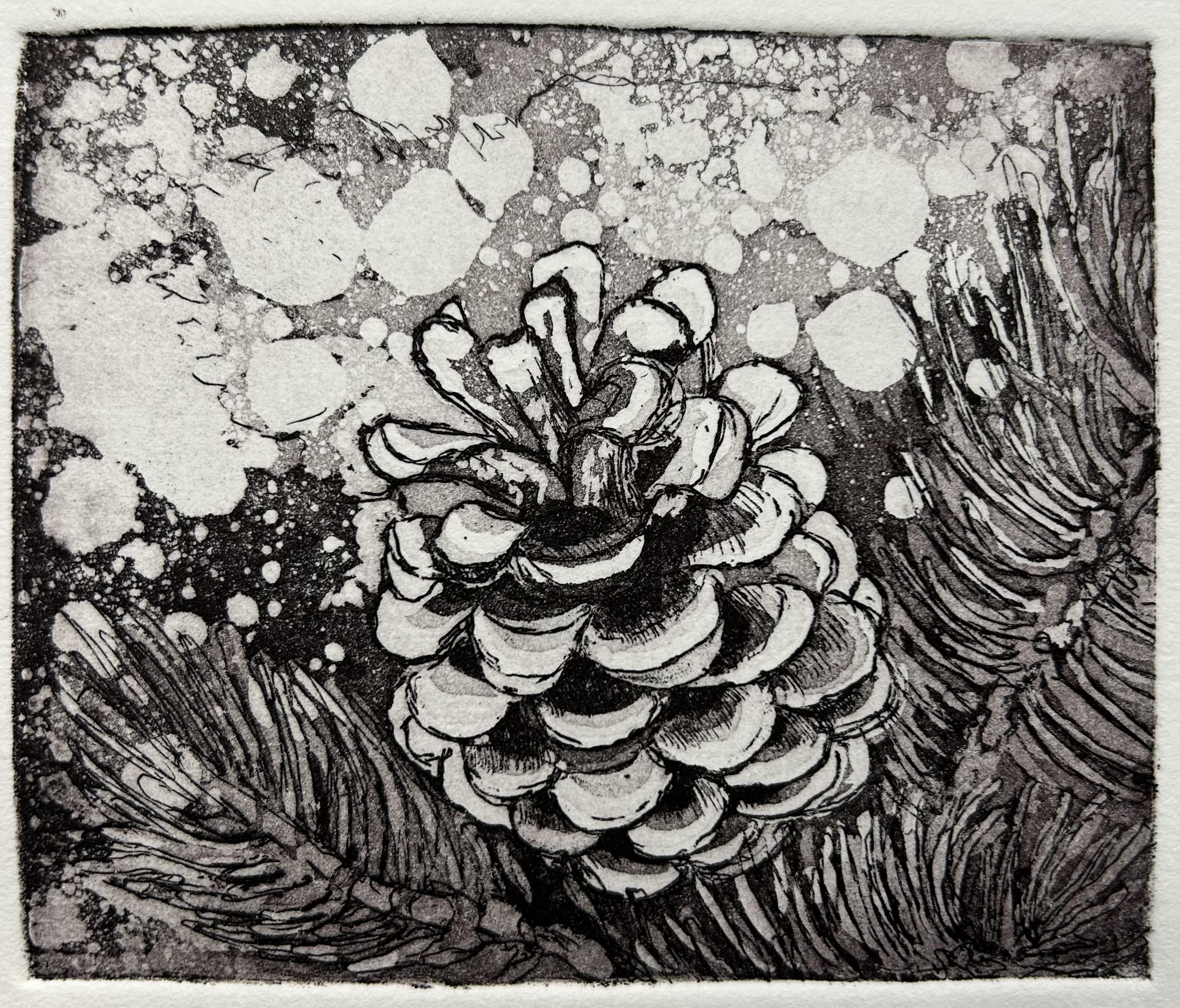It's quite funny, really… I haven’t been in my studio for some time, so getting back in with a short deadline to create the Christmas card was a bit of a challenge. This is the last of three images related to Christmas trees. I’ve done Mistletoe and Holly, so Pine was the final one.