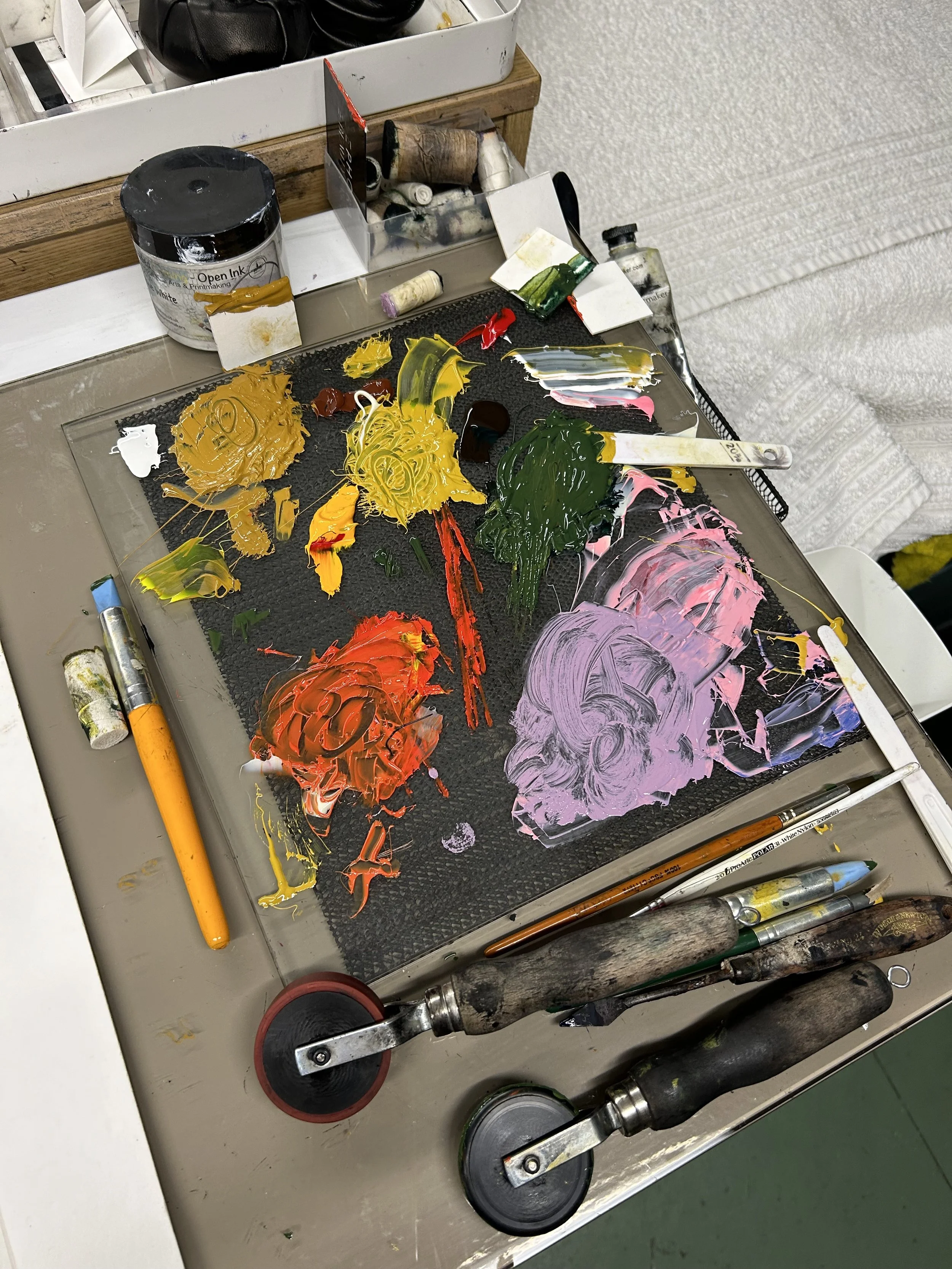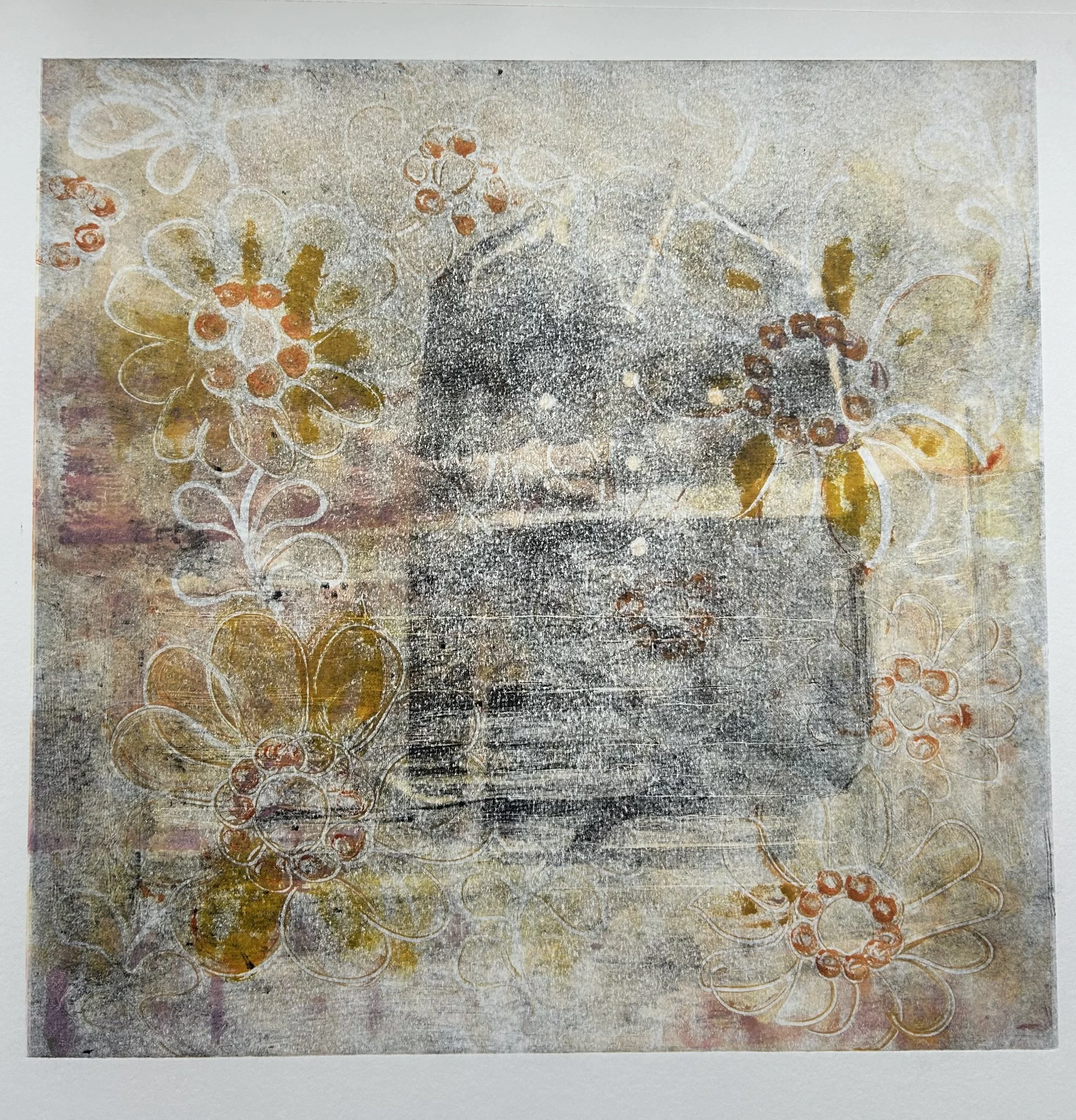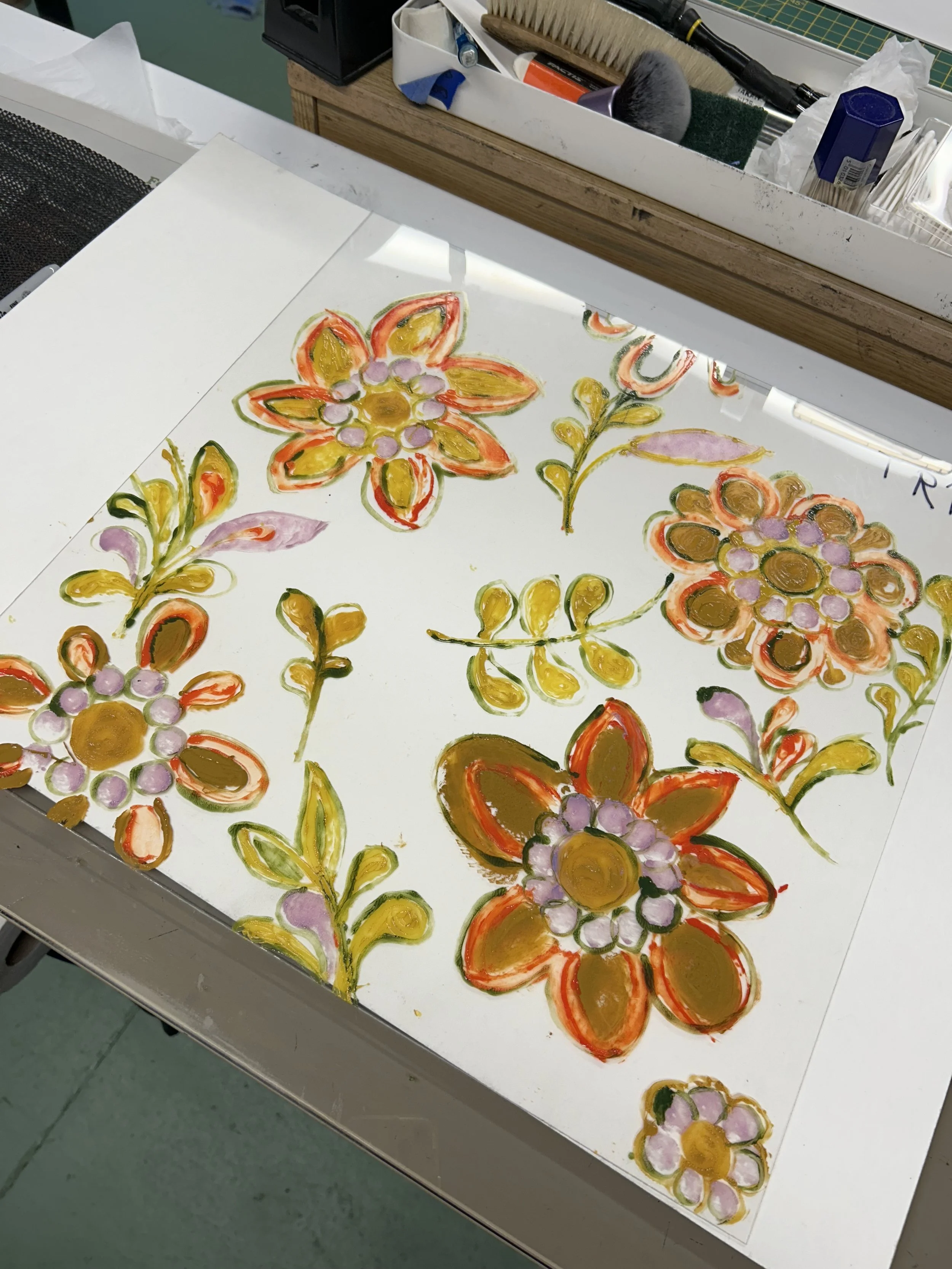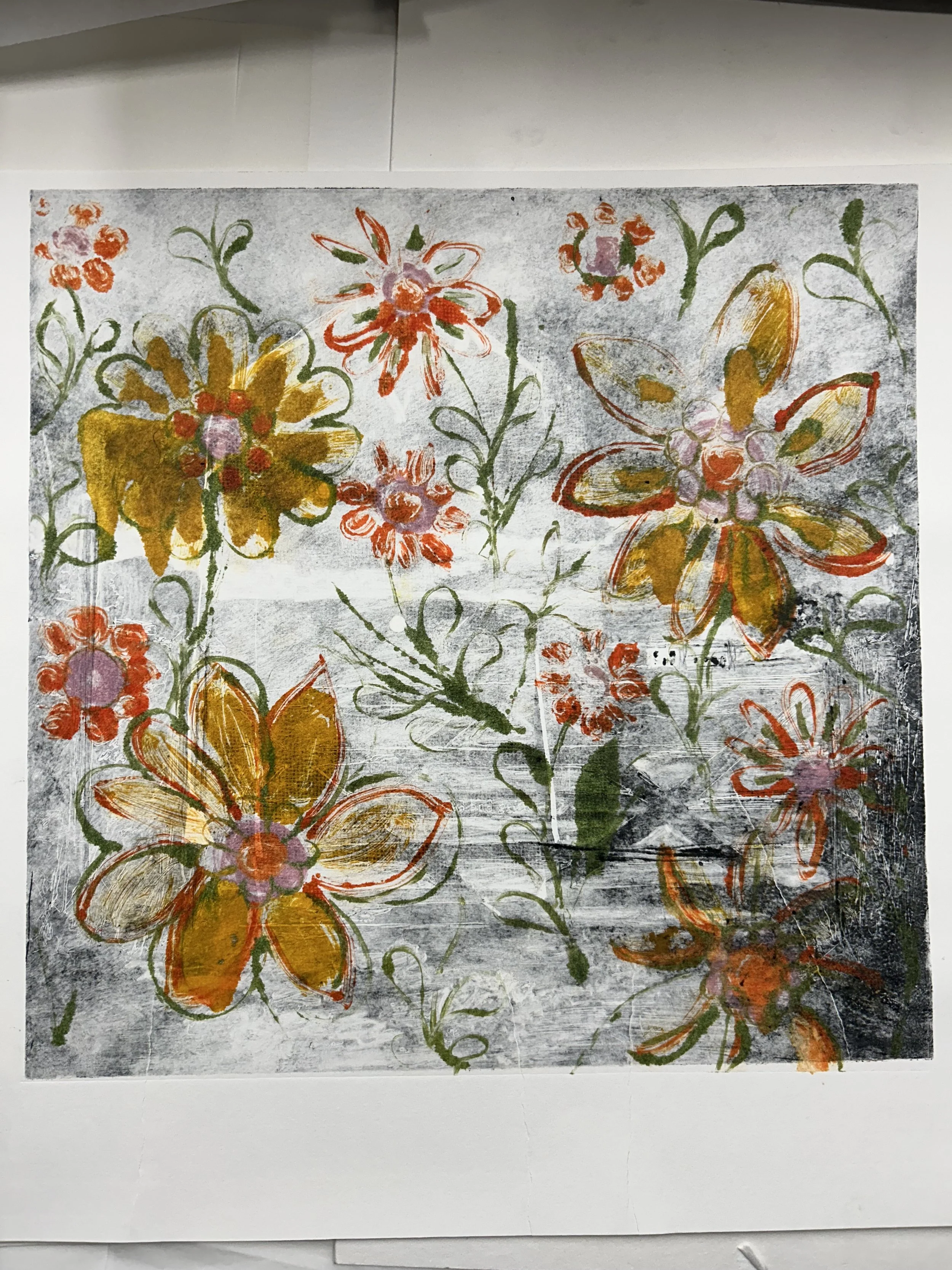 Monoprinting the background first. I printed variations to give a selection.