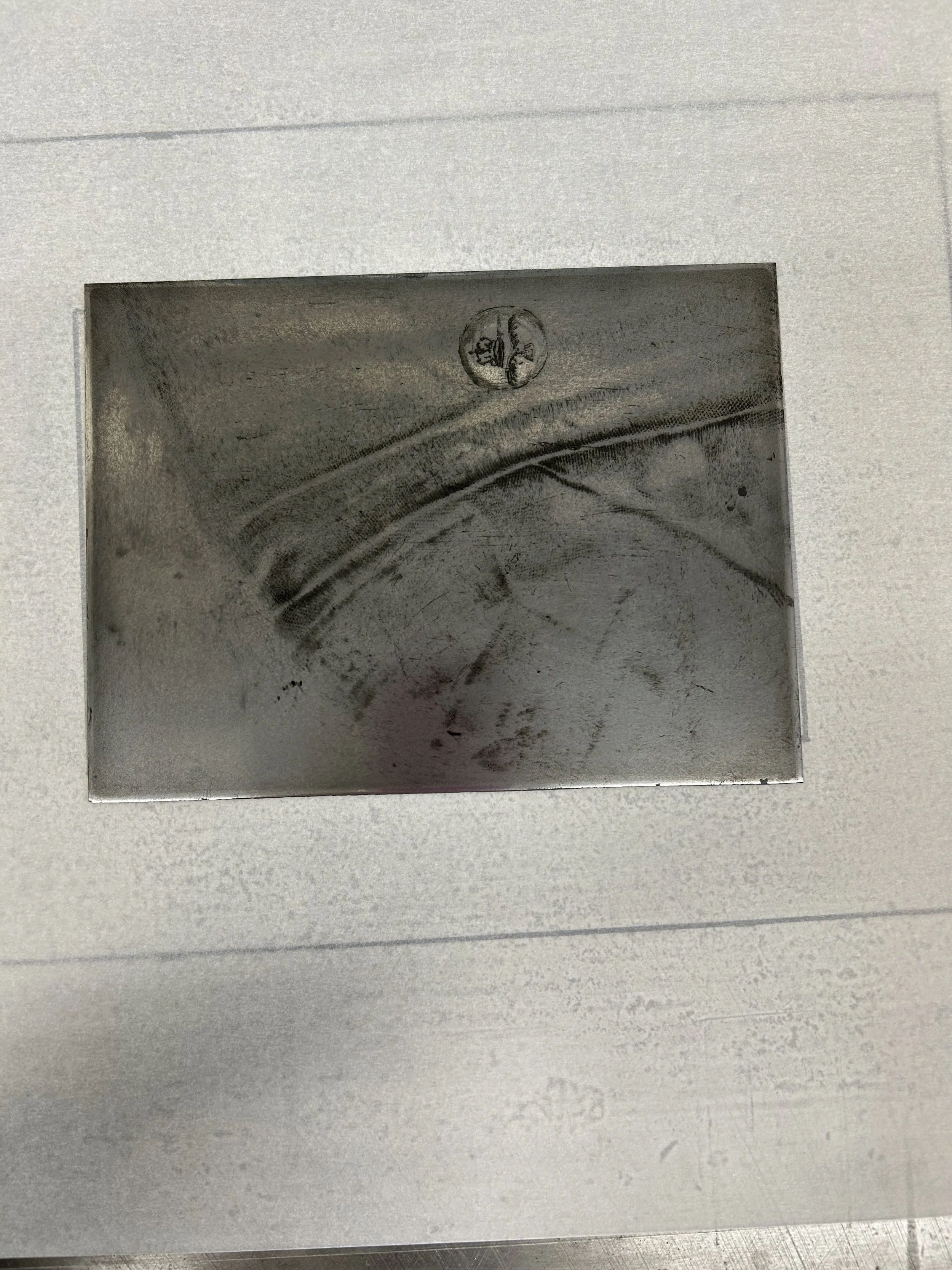 The problems were many. The size of the jacket, the size rod all the baths, aquatint cupboards, and the cost of plate material were the main considerations. Many of these would be resolved if I allowed myself to produce several plates to create the one image. But I wanted to see if there was a way to get this in one.